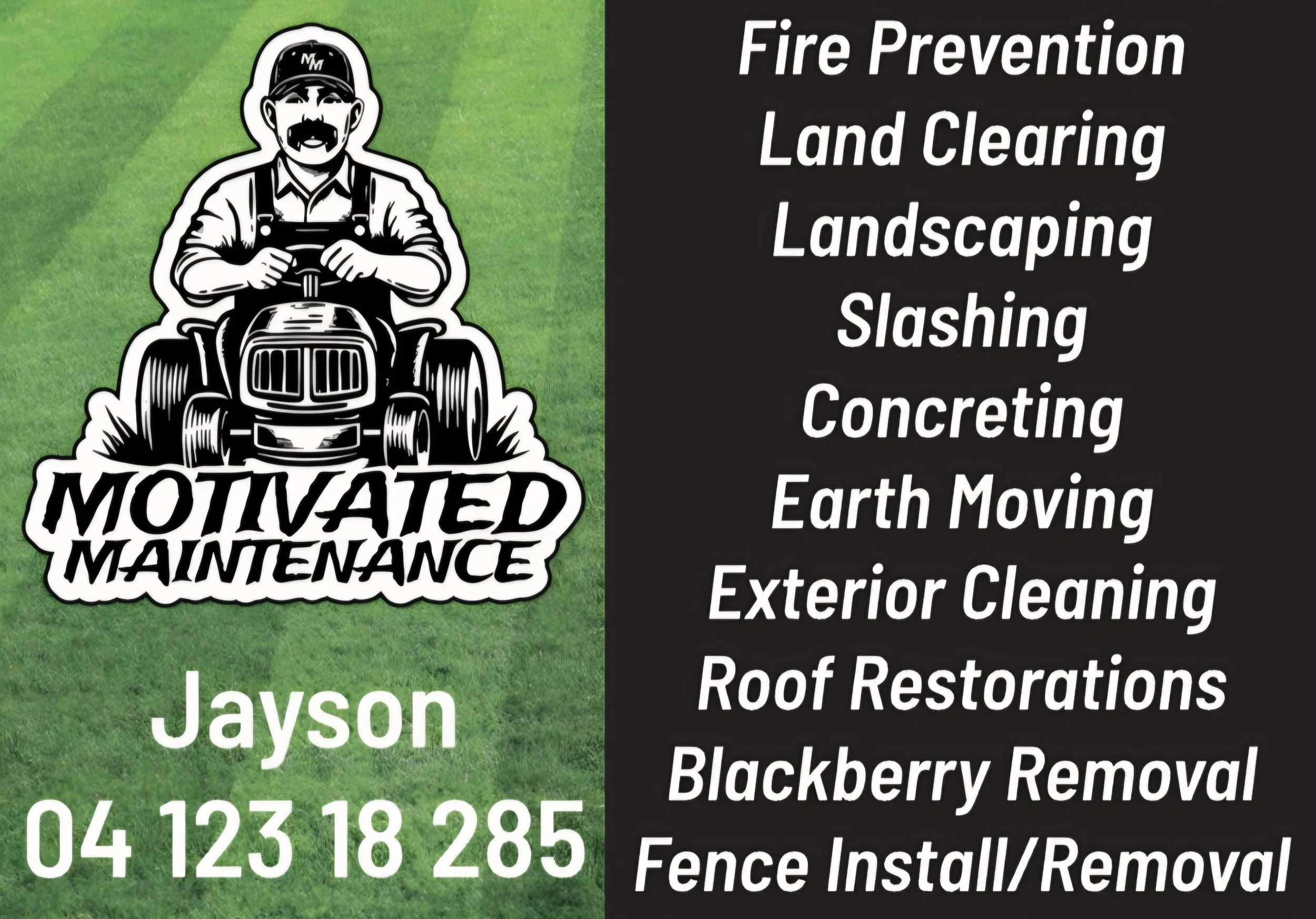 Explore Our Services What We Offer Blackberry RemovalExterior Cleaning Pressure Washing RoofingFire Prevention Fire BreaksLandscaping Concreting Paving Tiling Garden Transformations MowingSlashingEarth MovingLand Clearing Estate ClearingStump Grinding Tree Removal Rubbish RemovalScrap RemovalFence Install/Removal Some of our recent work..